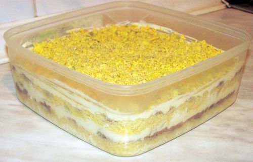 В некоторых семьях мимоза является традиционным праздничным салатом, да и в обычные дни нередко готовится. Продукты для салата мимоза с консервой: банка