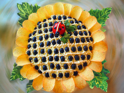 Обязательно приготовьте оригинальный и яркий салат подсолнух, который не оставит равнодушным ваших гостей. Салат подсолнух с грибами и курицей: компоненты