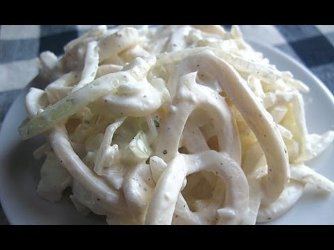 Кальмары уже давно общедоступны, поэтому разнообразие салатов и закусок из этого морепродукта очень велико. Для салата из кальмаров с луком и яйцом берем