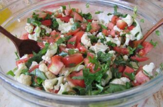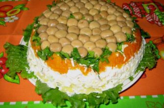 Такой легкий салатик очень просто сделать в домашних условиях. Прекрасно подходит в качестве гарнира к грибным и мясным кушаньям.