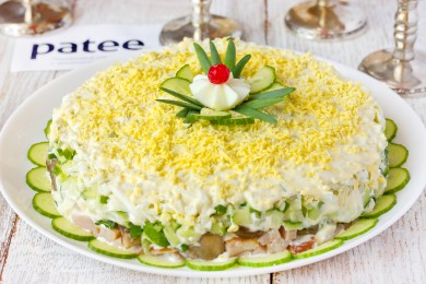 Если захотелось что-то необычное и несложное в приготовлении, советуем сделать этот салат. Сочетание копченой курицы, грибов и свежего огурца делает это блюдо находкой для гурманов и любителей необычных вкусов.