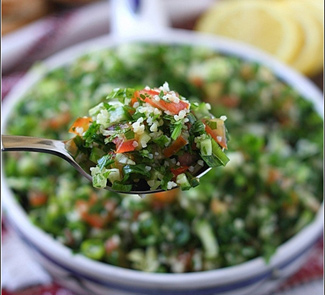 Табуле – ливанский холодный салат на основе запаренного булгура (особый вид пшеничной крупы), сочных помидор и ароматной петрушки. Зелень является основным ингредиентом. Для заправки используется лимонный сок и оливковое масло. Не бойтесь приготовить это блюдо — оно вкусное и полезное, а готовится очень просто. Кстати, на Востоке его едят с помощью виноградных листьев или лаваша.